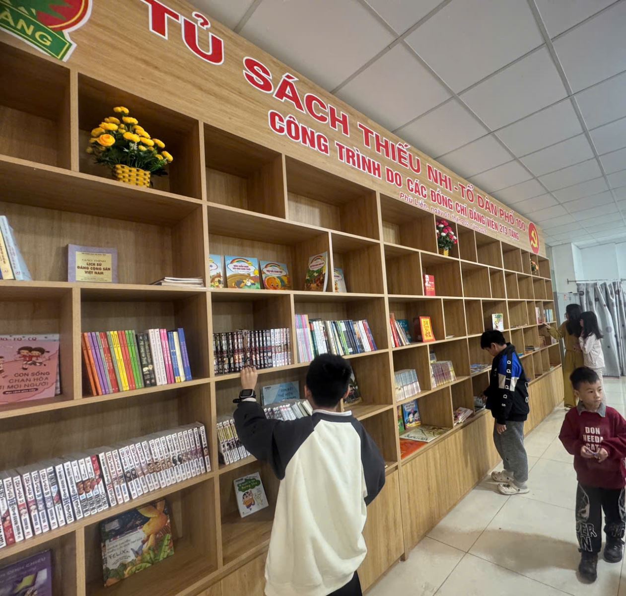 Tủ sách Thiếu nhi Tổ dân phố 100 được bố trí trong không gian Nhà Văn hóa tổ dân phố với diện tích hơn 80m2, được trang bị đầy đủ bàn, ghế, giá sách, biển hiệu và nội quy hoạt động...; với tổng số vốn tài liệu ban đầu gần 1.000 bản sách với các chủ đề như: Văn hóa, lịch sử, pháp luật, văn học, kỹ năng sống, sách dành cho thiếu nhi... trong đó có gần 100 bản sách hạt nhân do Thư viện tỉnh hỗ trợ và đồng thời luân chuyển 300 đầu sách với nội dung phong phú dành cho thiếu nhi.